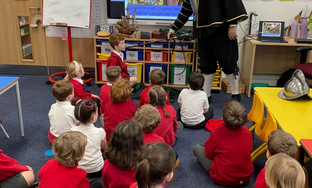 Class 1 were lucky enough to have a visit from local historical figure, Sir Francis Drake. Sir Francis had bought lots of different artefacts with him for us to look at and ask questions about. We learnt all about Drake and his circumnavigation of the globe; playing a board game where we raced against each other to complete the route that the Golden Hind took across the seas. We played Bingo, created our own treasure maps, made a treasure island, played a Pirate game where we had to survive quicksand and stormy waters and much more. Sir Francis then hid (delicious) treasure for us to find in the classroom. We had a brilliant day and learnt so much interesting information. We are now all experts on Sir Francis Drake and the Golden Hind! Thank you very much to FOLS who kindly funded this experience for us.